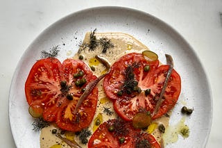 Pickled green walnuts, Mr Ellis the enigma, and big ripe tomatoes ‘tonnata’ style